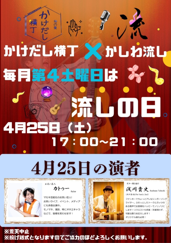 4月25日(土) 17:00~21:00(投げ銭方式)(荒天中止)