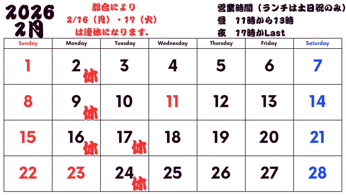 2/17(火)・2/24(火)ですが、都合により